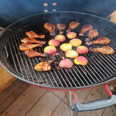 Pfirsich Chili Drum Sticks mit gegrillten Pfirsichen